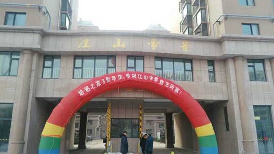 2016年12月28日,江山帝景B区四栋高层住宅楼共计444户,按合同约定如期向业主交付。
