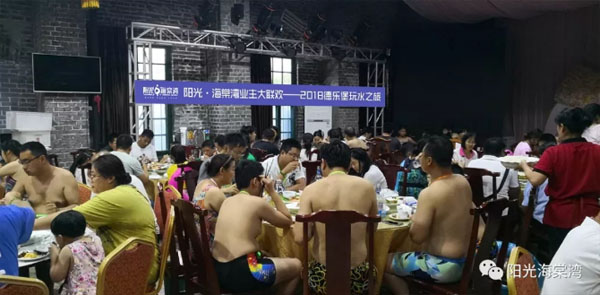 7月28日中午,细雨蒙蒙的天气没有降低业主的热情,近400业主冒雨准时抵达售楼处开始签到,阳光·海棠湾业主大联欢第二季——2018德乐堡(潍坊)玩水之旅正式开启。