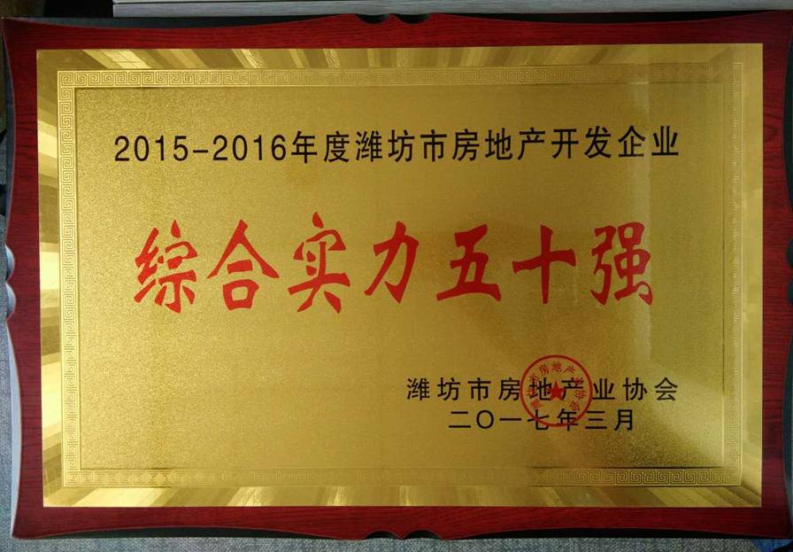 我公司荣获2015-2016年度潍坊市房地产开发企业综合实力50强