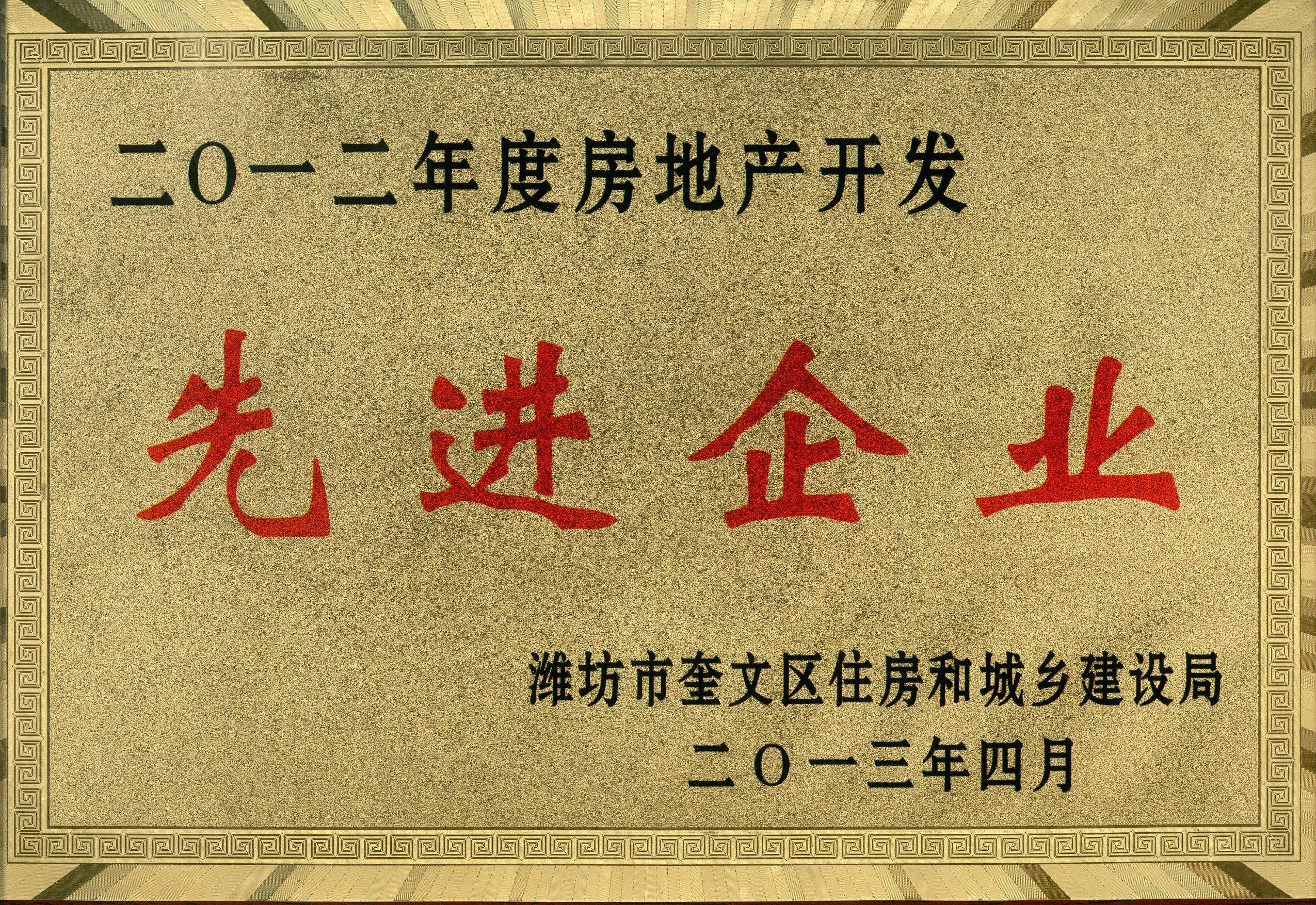 我公司被评为2012年度房地产开发“先进企业”